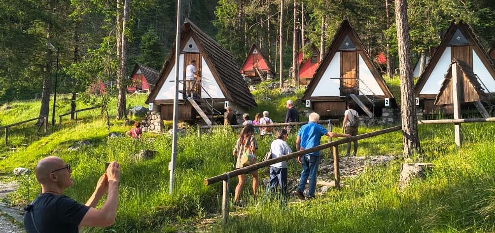 Il viaggio è proseguito con passeggiate verso la cascata di Ru de Assola, fino a trasformarsi in una vera caccia al tesoro all’interno del Villaggio, per riscoprirne il carattere ludico e fantastico. Non solo visite, ma incontri: con i luoghi, con chi ci ha accolto, con chi ha custodito le chiavi di spazi solitamente chiusi. Il paesaggio non come cornice, ma parte viva del racconto.