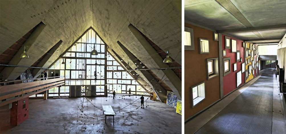 Al campeggio, pensato per i ragazzi dagli 12 ai 18 anni, ci hanno colpito le piccole capanne di legno, colorate come una tavolozza di Le Corbusier: letti richiudibili, spazi minimi ma intelligenti, servizi condivisi e grandi sale comuni. Architettura semplice, ma capace di educare alla convivenza.