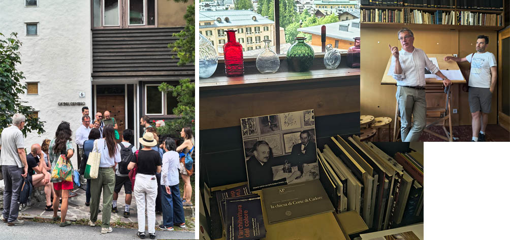 Dopo una sosta al forno di San Vito, ci siamo spostati a Cortina per conoscere un Gellner diverso: il Residence Palace delle Olimpiadi ’56, con le sue scale rosse leggere come origami; il Palazzo Telve e Luce, discusso ma sorprendentemente moderno; infine Cà del Cembro, la casa-studio, raccontata da Michele Merlo, ultimo collaboratore dell’architetto. Qui Gellner ha vissuto e lavorato fino al 2004, scattando ogni giorno una fotografia alla Tofana di Rozes, in un rituale intimo di luce e paesaggio.