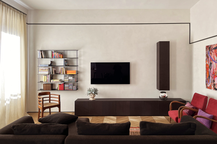 Un reticolo di righe disegna il carattere contemporaneo di un’abitazione in centro a Roma, a due passi dalla cupola di S. Pietro. La sequenza di rimandi geometrici che innesca esalta così la semplicità della nuova abitazione di una cliente alla seconda operazione con lo studio, partecipe anche questa volta con grande entusiasmo alla definizione del progetto, nella misura da ritoccarne anche il nome: ‘non sono poi così cambiata’, a sottolineare, pur in un contesto più storico del precedente, la volontà di sostenere un progetto comunque dichiaratamente contemporaneo.